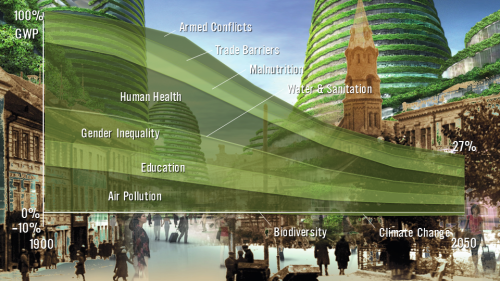 * Unique, quantitative assessment and comparison of ten of the biggest challenges to human development, ranging from 1900 through to 2050