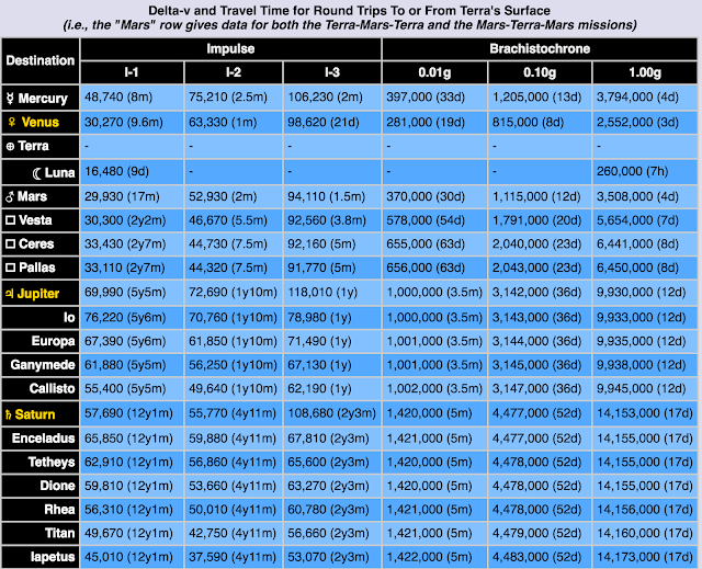 It is a table of mission parameters calculated by Jon C. Rogers for the book Spaceship Handbook.