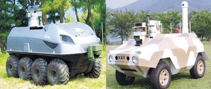 Korea also making military robots A battery powered surveillance XAV weighs in at 1.2-tons and is designed for patrol and information gathering. Top speed of about 19MPH. A gasoline powered combat XAV weighs 0.9 tons and has a top speed of 28 mph and has 5.56-millimeter machine guns. The units are being tested and will be upgraded before deployment between 2013 and 2020.