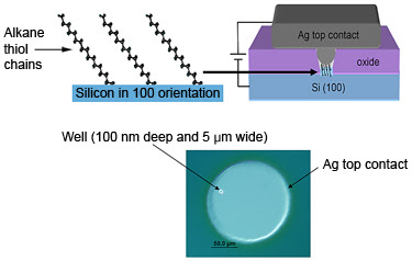 For their electronic device, the NIST team first demonstrated that a good quality monolayer of organic molecules could be assembled on the silicon orientation common to industrial CMOS fabrication, verifying this with extensive spectroscopic analysis.