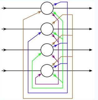 classic Hopfield neural network [shown to the left] with quantum adiabatic computation. Both the input and the memorized patterns are represented by means of the problem Hamiltonian. In contrast to classic neural networks, the algorithm can simultaneously return multiple recognized patterns. The approach also promises extension of classic memory capacity. A proof of principle for the algorithm for two qubits is provided using a liquid state NMR quantum computer.