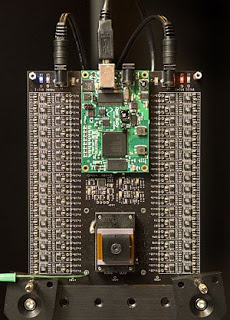 They it built around their “multi-aperture image sensor.” They’ve shrunk the pixels on the sensor to 0.7 microns, several times smaller than pixels in standard digital cameras. They’ve grouped the pixels in arrays of 256 pixels each, and they’re preparing to place a tiny lens atop each array.