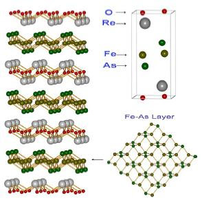 The new materials resemble the cuprates in some striking ways. They are also layered materials, but instead of copper and oxygen, they contain planes of iron and arsenic along which the electrons presumably glide. Between the planes lie elements such as lanthanum, cerium, or samarium mixed with oxygen and fluorine. On 23 February, Hideo Hosono of the Tokyo Institute of Technology and colleagues reported in the Journal of the American Chemical Society that lanthanum oxygen fluorine iron arsenide (LaO1-xFxFeAs) becomes a superconductor at 26 kelvin.