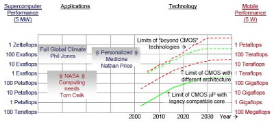 The biggest barrier to exaflops and zettaflops is the heat/power problem. Transistors may be cheap, but the energy they dissipate is not.