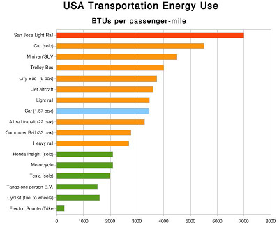 Brad looks at the myth of green public transit. Note: public transit can be far more energy efficient in places like asia where there is very high density on the buses and trains.