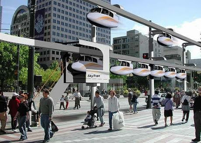 Electric planes (with jumpjet type takeoff and landing) could form a virtual callable personal pod transportation (which have been proposed for cities) but without building the rails. One of the Personal pod transportation proposals is shown here.