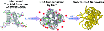 The new concept uses DNA strands as a matrix; the strands completely “wrap” the scaffold-forming carbon nanotubes in the presence of an ionic liquid, networking them to form a gel. This gel can be spun: just as silk and synthetic fibers can be wet-spun for textiles, the gel can be made into very fine threads when injected into a special bath. The dried fibers have a porous, sponge-like structure and consist of a network of intertwined 50 nm-wide nanofibers. Soaking in a calcium chloride solution further cross-links the DNA, causing the fibers to become denser and more strongly connected.