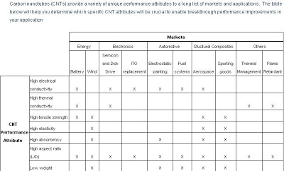 Applications which can use the large new supply of carbon nanotubes [click on the picture to the left for a larger image].