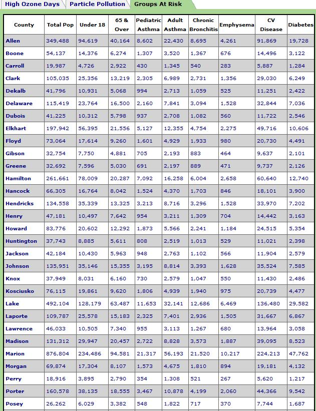 At risk populations from bad air pollution, those with asthma, chronic bronchitis, emphysema, cardiovascular disease and diabetes
