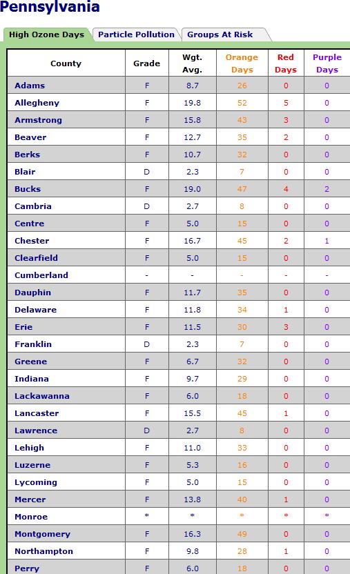 Pennsylvania air quality and Health Impacts