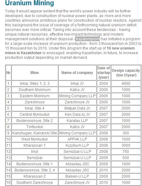Kazatomprom, the Uranium mining company of Kazakhstan is on track to deliver 15,000 tons of uranium per year in 2010.