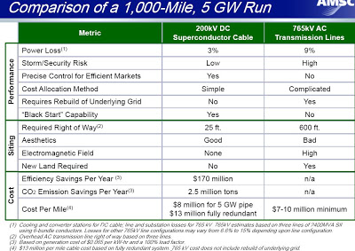Eliminating the inefficiencies of traditional copper wires would save around $16 billion a year, estimates the US Department of Energy – and pave the way for long-distance transmission of wind and solar power. Another advantage: Being underground, the cable would be resistant to terrorist strikes.
