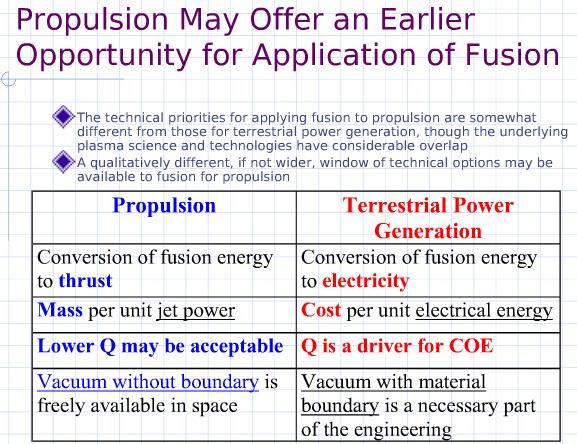 * Fusion Propulsion is one of the main options for deep space propulsion