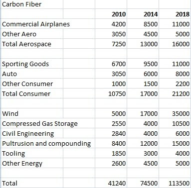 CompositesWorld’s Carbon Fiber 2009 conference had a forecast of carbon fiber supply and demand World carbon fiber production should increase from 41240 tons to 113500 tons in 2018.