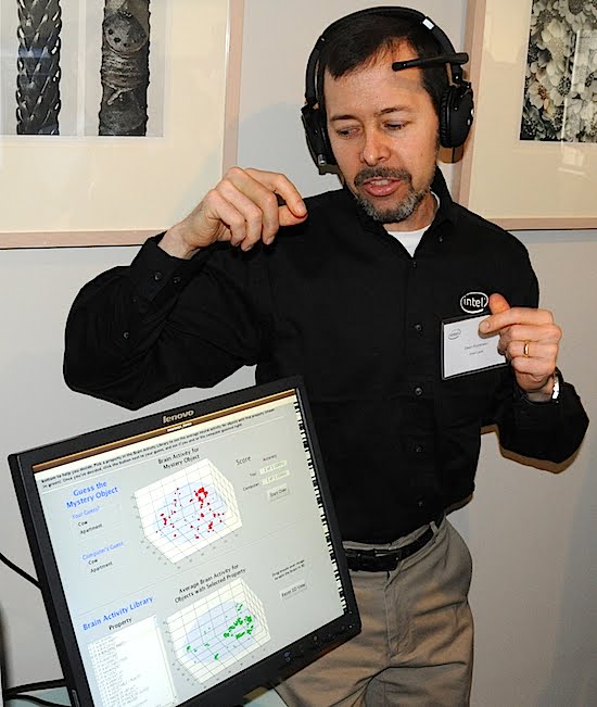Intel’s scientists are creating detailed maps of the activity in the brain for individual words which can then be matched against the brain activity of someone using the computer, allowing the machine to determine the word they are thinking.