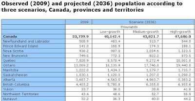 Canada is projecting faster population growth because of more immigration than they have projected in the past. Previously Canada was projecting 39.4 million people in 2035 but now they are projecting a medium assumption forecast of 43.5 million in 2035. There will be many updated national population counts and new population forecasts starting from the end of 2010 and through 2011 and 2012 as the census results from 2010 are tabulated for different countries.