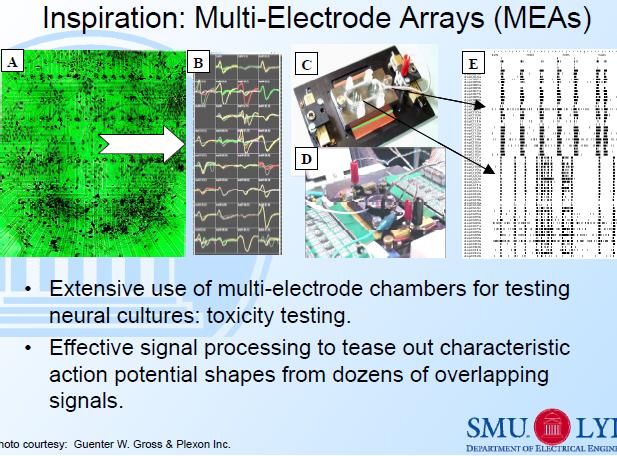 • MEAs (Multi-electrode arrays) work from sensing ion flux at double Helmholtz layer near electrode.