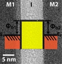 A metal-insulator-metal, or MIM diode can be used to perform some of the same functions, but in a fundamentally different way as conventional electronics. In this system, the device is like a sandwich, with the insulator in the middle and two layers of metal above and below it. In order to function, the electron doesn’t so much move through the materials as it “tunnels” through the insulator – almost instantaneously appearing on the other side.