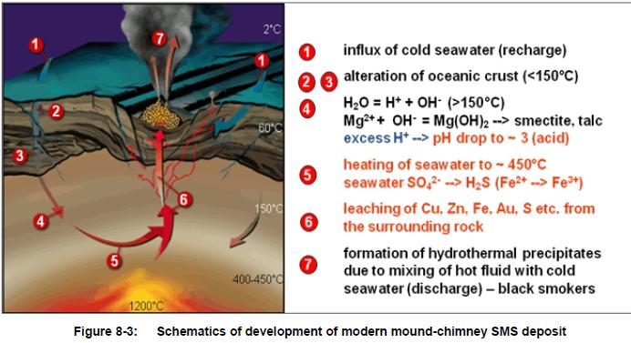 They occur within environments dominated by volcanic or volcanic derived (e.g., volcano-sedimentary) rocks, and the deposits are coeval and coincident with the formation of associated volcanic rocks. As a class, they represent a significant source of the world’s Cu, Zn, Pb, Au, and Ag ores, with Co, Sn, Ba, S, Se, Mn, Cd, In, Bi, Te, Ga and Ge as co- or by-products