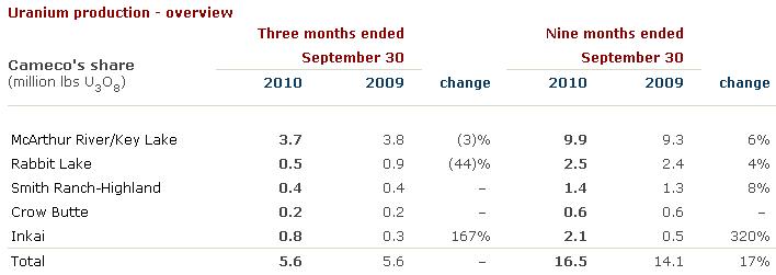 4. Uranium One Inc. (“Uranium One”) today reported record quarterly sales of 1.7 million pounds, production of 1.7 million pounds and a decrease in total cash costs at its operations to $12 per pound sold during the third quarter of 2010. Uranium One’s 2010 production guidance remains 7.0 million pounds. The Company’s production guidance for 2011 is 10.5 million pounds and 12.5 million pounds for 2012.