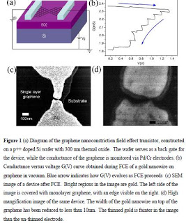 Arxiv – High On/Off Ratio Graphene Nanoconstriction Field Effect Transistor Graphene transistors with current on/off ratios greater than 1000 could be suitable for digital electronics applications say the researchers, who now hope to increase the efficiency of their top-down fabrication process to produce integrated circuits containing NCFETs