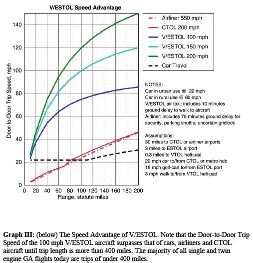 The great promise of GQ V/ESTOL aircraft as a transportation solution is that they can complement commercial air travel by restoring its door-to-door trip speeds, by eliminating ground travel delays. The Green Flight Challenge program can efficiently promote such transformative aircraft as a path toward a potentially enormous new market. GFC can trump the Innovator’s Dilemma that afflicts civil aviation today.