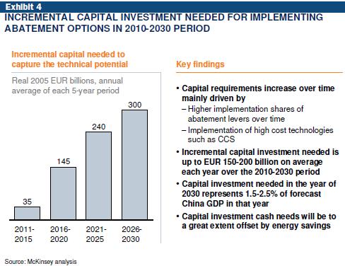 China appears to be going for a more aggressive buildout of nuclear power and hydro power than the McKinsey 2009 proposal. China is targeting 112-120 GW for 2020 for nuclear power and the 2030 target could be 300-400 GW for nuclear.