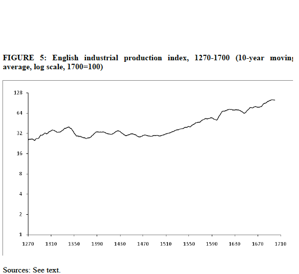 The research shows that the path to the Industrial Revolution began far earlier than commonly has been understood. A widely held view of economic history suggests that the Industrial Revolution of 1800 suddenly took off, in the wake of centuries without sustained economic growth or appreciable improvements in living standards in England from the days of the hunter-gatherer. By contrast, we find that the Industrial Revolution did not come out of the blue. Rather, it was the culmination of a long period of economic development stretching back as far as the late medieval period