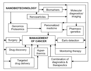 Nanooncology has a promising future, and further advances are anticipated in the next 5 years. It is feasible to use molecular tools to design a miniature robotic device, a nanobot, that can be introduced in the body to locate and identify cancer cells and finally destroy them. The device would have a biosensor to identify cancer cells and a supply of anticancer substance that could be released on encountering cancer cells. A small computer could be incorporated to program and integrate the combination of diagnosis and therapy and provide the possibility of monitoring the in vivo activities by an external device. Since there is no universal anticancer agent, the computer program could match the type of cancer to the most appropriate agent. Such a device could be implanted as a prophylactic measure in people who do not show any obvious manifestations of cancer. It would circulate freely and could detect and treat cancer at the earliest stage. Such a device could be reprogrammed through removal control and enable a change of strategy if the lesion encountered is other than cancer