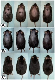 Researchers from UCLA and the Veterans Administration that was investigating how stress affects gastrointestinal function may have found a chemical compound that induces hair growth by blocking a stress-related hormone associated with hair loss — entirely by accident. The astressin-B peptide was responsible for the remarkable hair growth in the bald mice. Just one shot per day for five consecutive days maintained the effects for up to four months (16% of the 2 year lifespan of the mouse). Treatment of human hair loss could be achieved through the modulation of the stress hormone receptors, particularly hair loss related to chronic stress and aging. If it works in humans is appears to be a cure for baldness.