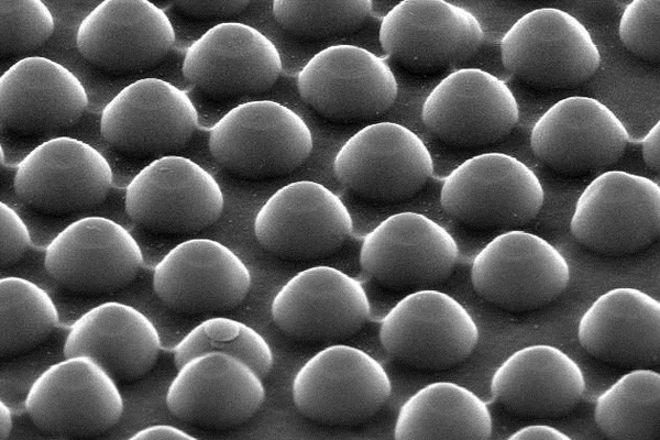 When all those nanodimples fill up, the result is a pattern of nanodomes on the light-ward side of the silver.