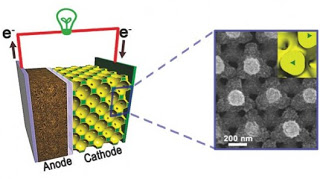 Then the researchers fill the space between and around the spheres with metal. The spheres are melted or dissolved, leaving a porous 3-D metal scaffolding, like a sponge. Then a process called electropolishing uniformly etches away the surface of the scaffold to enlarge the pores and make an open framework. Finally, the researchers coat the frame with a thin film of the active material.