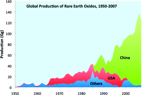 Even though rare earth metals are indispensible in modern technology, very little quantitative information other than combined rare earth oxide extraction is available on their life cycles. We have drawn upon published and unpublished information from China, Japan, the United States, and elsewhere to estimate flows into use and in-use stocks for 15 of the metals: La, Ce, Pr, Nd, Sm, Eu, Gd, Tb, Dy, Ho, Er, Tm, Yb, Lu, and Y. Here, we show that the combined flows into use comprised about 90 Gg (Gg is a billion grams which is one thousand tons] in 2007; the highest for individual metals were 28 Gg Ce and 22 Gg La, the lowest were 0.16 Gg Tm and 0.15 Gg Lu. In-use stocks ranged from 144 Gg Ce to 0.2 Gg Tm; these stocks, if efficiently recycled, could provide a valuable supplement to geological stocks.