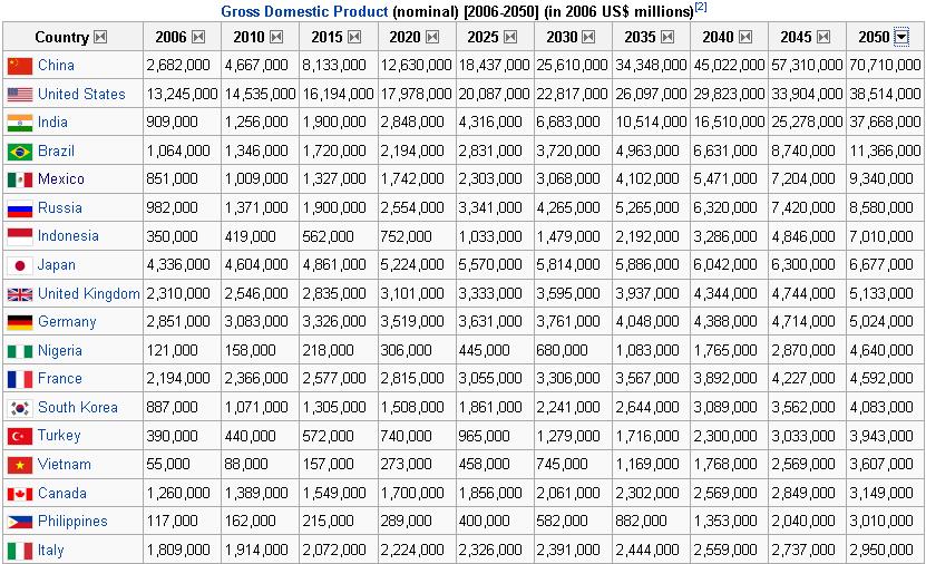 Brazil, Mexico, Russia and Indonesia would be a second tier.
