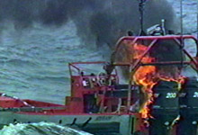 The Office of Naval Research successfully disables a small target vessel using a solid-state, high-energy laser mounted onto the deck of the Navy’s self-defense test ship, former USS Paul Foster (DD 964). Credit: US Navy photograph