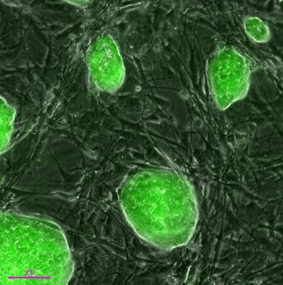 Mouse iPSCs generated using the microRNA method pioneered by the Morrisey Lab. The green fluorescence reveals expression of the Oct4 gene, which is a marker of pluripotent stem cells. Credit: Ed Morrisey, PhD, University of Pennsylvania School of Medicine