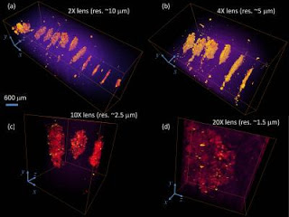 These images show microcomputed x‑ray tomography renderings of an acoustically engineered nanocomposite metamaterial based on ~5nm‑diameter diamond nanoparticles.