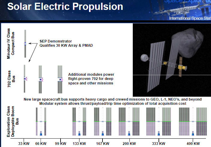 There is an emphasis on solar electric propulsion as well and there are other propulsion and power systems which could work. The panels like what they propose are on the ISS but those are heavy and do not provide as much power for the weight. It looks like because of the weight of what they are proposing they would need multiple launches and assembly in space. More launches and more work in space increases the costs of the missions. The pictures are pretty though.