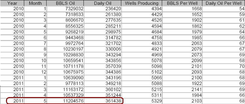 North Dakota oil production set a record of 361438 barrels per day in May. They overcame issues with flooding that was slowing production increases.