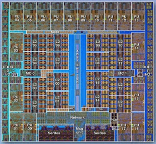 The IBM chip uses 18 cores, one just to process operating system tasks and another held in reserve as a spare. The cores are a custom circuit design based on the PowerEN core used in an IBM communications chip.