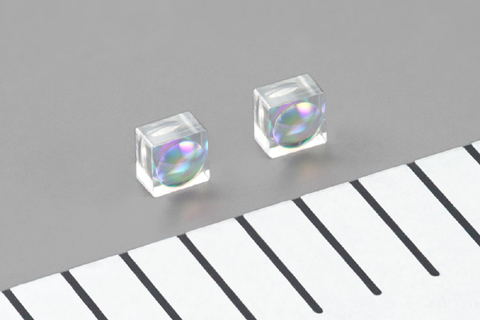 The FLGS3 Series is a highly efficient 1 × 1mm square aspherical glass lens—the industry’s smallest. Alps harnessed technologies accumulated through more than 20 years serving the optical communication market—in the areas of optical design, mechanical design, mold and die manufacturing, molding, and simulation—to expand the effective numerical aperture (NA) to 0.65 × 0.13 (from 0.5 × 0.1) while retaining the industry’s smallest size, and as a result raise optical coupling efficiency, which is a measure of light transmission efficiency, to 73% from 68%. With low loss, the light input required for a given output is smaller. This contributes to low power consumption, and also restricts heat generation, thereby enabling application in low-price modules that do not require Peltier devices*1 or other cooling components. The lens is also ideal for high-brightness projector applications.