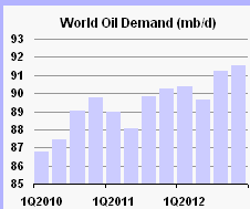World oil supply rose by 1.0 mb/d in August, to 89.1 mb/d, with non-OPEC production up by 0.8 mb/d. Rising US and Latin American production offset heavy maintenance and field outages in the North Sea. Non-OPEC supply has been revised lower to 52.8 mb/d in 2011 on outages in the Middle East and China, rising to 53.8 mb/d in 2012.