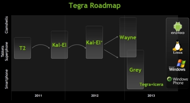 Germany-based Heise Online, (translated) NVIDIA will follow Kal-El with the release of Kal-El+ sometime in 2012, and then the Tegra system will break off into two business lines. Project Wayne will largely target the tablet and superphone market near the end of 2012, and Project Grey will focus on the more basic smartphone market.