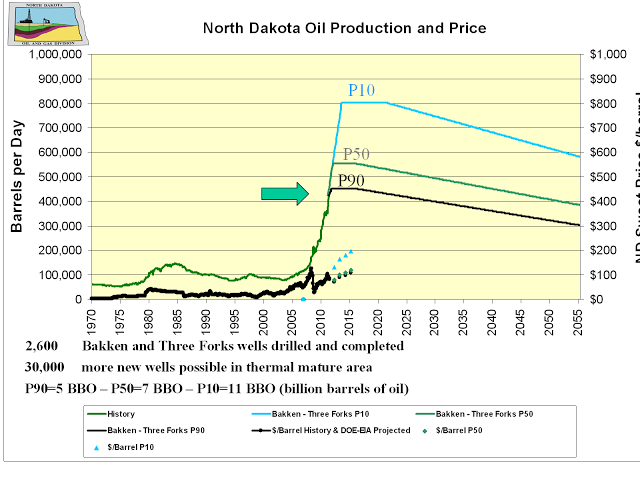 If Harold Hamm is correct (and he has made himself about 8 billion from oil in North Dakota) then North Dakota could reach well over 1 million barrels per day.
