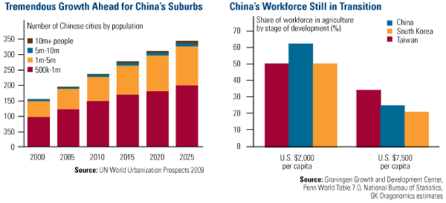 The case of the ghost cities and overbuilt property would be far more of a problem when it happens in the United States. However, China is urbanizing at 18 to 30 million people per year. So China can absorb real estate equal to a Los Angeles in less than one year.