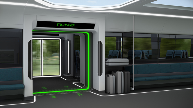 The tram would speed up while the train slowed down, allowing the two to safely dock for the same time a train would normally spend sitting in a station. Passengers could also use trams to transfer from one high-speed train to another.