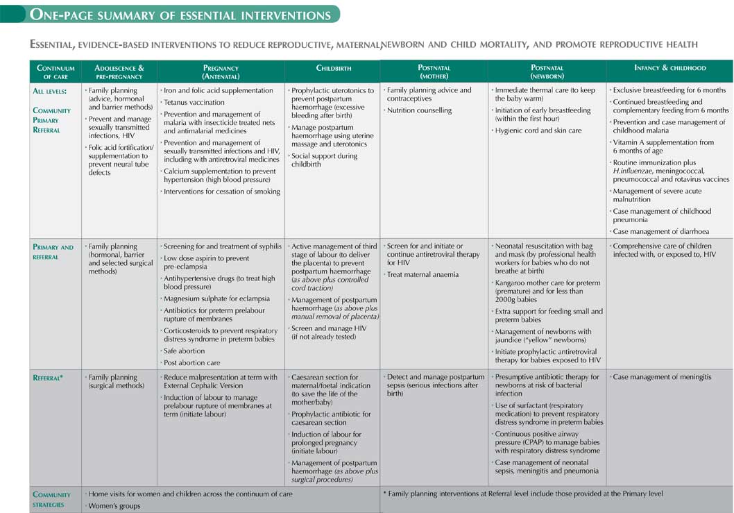 * Antibiotics for the treatment of pneumonia in children.“What is new,” says Dr. Elizabeth Mason, Director of WHO’s department of Maternal, Newborn, Child and Adolescent Health, and an author of the study, “is putting together information in a different way and building consensus among physicians, scientists and professional organizations to lay out an evidence-based path to help women before, during and after birth and their children. Everyone now agrees on the 56 essential interventions.”