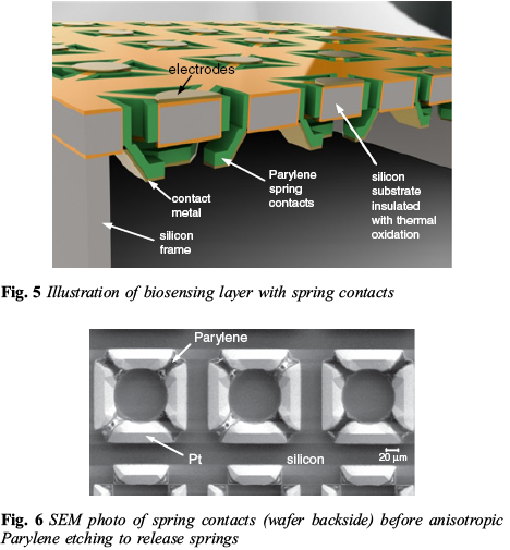 To solve this problem, the EPFL scientists looked at how they could separate the liquids that needed to be analyzed from the electronic circuits. In the Center for Micronanotechnologies (CMi) cleanrooms, they developed a procedure to manufacture a component that is placed on top of the electronics, like a kind of cap. The sample of biological material, placed in the cap, never enters into contact with the circuits. Its electrical impulses are transmitted to the circuit by an array of electrodes passing through the silicon layer of the cap.