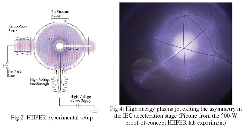 Although the helicon source and IEC have been used separately for space propulsion; issues of longevity, scalability and cost have always been a barrier in achieving more comprehensive interplanetary explorations. This is the first time that all these limitations have been overcome by using a Helicon stage to produce and inject very high density plasma into the IEC stage which accelerates ions to high energies (multikVs), forming an ultra high intensity, pencil-thin plasma jet exhaust that produces exceptional thrusting capability. The high ion energies plus the ability to use a wide variety of gases, e.g. nitrogen or argon as well as conventional xenon, provides high ISP, and with the addition of a heavier propellant gas in the nozzle, a variable power-ISP tradeoff. The HIIPER is also the only electric thrust system to date that can potentially be converted to a multi-role self-powered fusion spacecraft and propulsion system (e.g. presentation of the conceptual version with p-B11 fusion power, VIPER, for ultra fast deep space probe missions). Indeed, the IEC part is already used to fuse deuterium in commercially available low level neutron generators for Neutron Activation Applications (NAA).