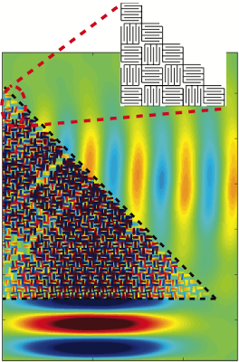 A sound wave (with wavelength larger than the squares) moving across the board gets delayed as it travels through the lengthy path within each square. The researchers focus on frequencies for which the path length is almost exactly a multiple of the wavelength. If the path is slightly longer, the wave emerges from the square at a point in its cycle only slightly delayed from when it entered, so the apparent speed of sound is very high, equivalent to an extremely small index of refraction. In contrast, at frequencies where the path is slightly shorter, the wave appears to exit before it enters. This situation leads to a negative effective index of refraction for the material, which is the same property that has allowed theorists to design super-resolution lenses and invisibility cloaks for light waves. But the principle of this new metamaterial wouldn’t work for light waves because they can’t ordinarily travel through a wave guide that is much narrower than their wavelength. Sound waves do this easily, as in a French horn, says Li.